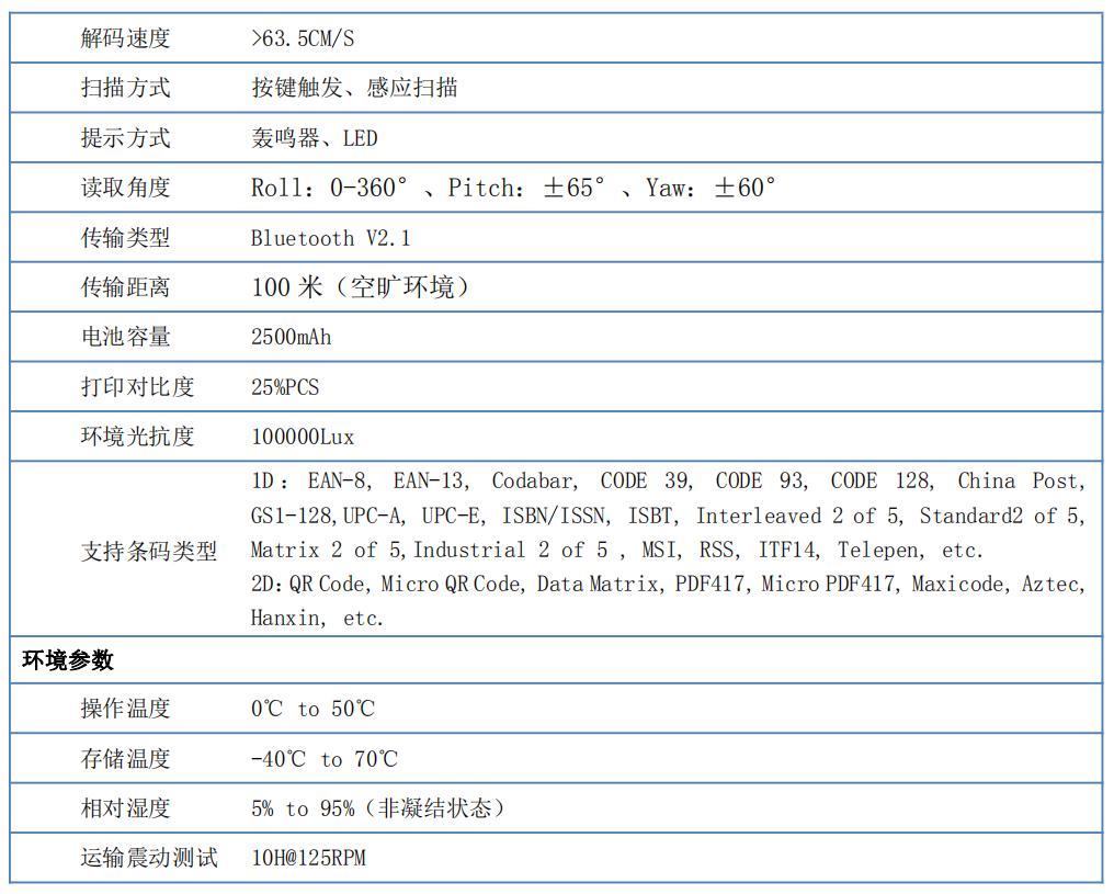 Ca-405-W藍(lán)牙無線手持條碼掃描槍的高性能配置:
