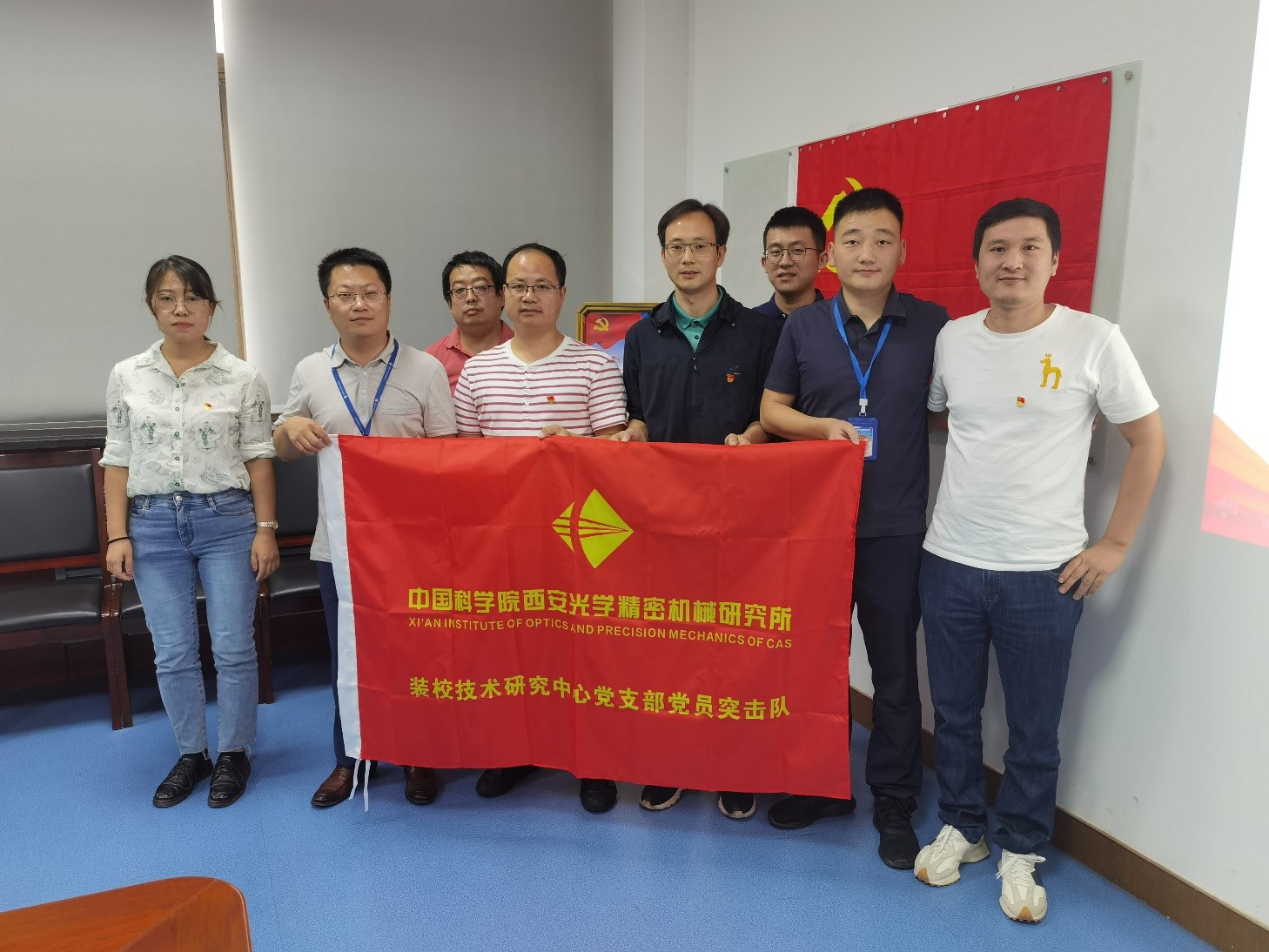 座談會(huì)后舉行了“黨員突擊隊(duì)”授旗儀式。王鋒、葛永嬌、楊洪濤、郭高、康世發(fā)等分別為空間光學(xué)裝配團(tuán)隊(duì)、大口徑光學(xué)裝配團(tuán)隊(duì)及精密機(jī)械裝配團(tuán)隊(duì)授“黨員突擊隊(duì)”隊(duì)旗,并向廣大黨員同志發(fā)出號(hào)召:希望廣大黨員強(qiáng)化責(zé)任擔(dān)當(dāng),攻堅(jiān)克難、吃苦奉獻(xiàn),真正起到先鋒模范帶頭作用,團(tuán)結(jié)帶領(lǐng)組內(nèi)職工群眾,努力保證科研生產(chǎn),以一絲不茍的態(tài)度對(duì)待產(chǎn)品,高質(zhì)量按期完成任務(wù)。把學(xué)習(xí)黨史同推動(dòng)科研工作結(jié)合起來,把學(xué)習(xí)成效轉(zhuǎn)化為工作動(dòng)力和成效。